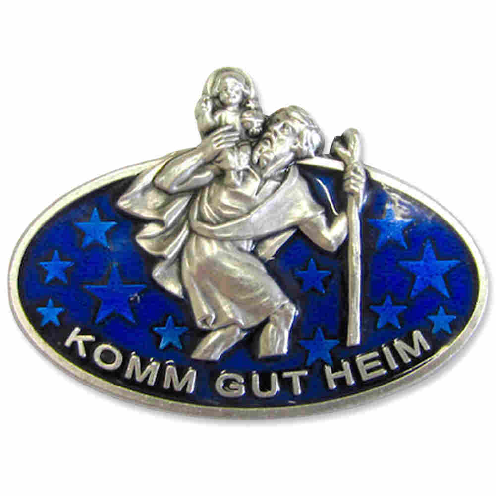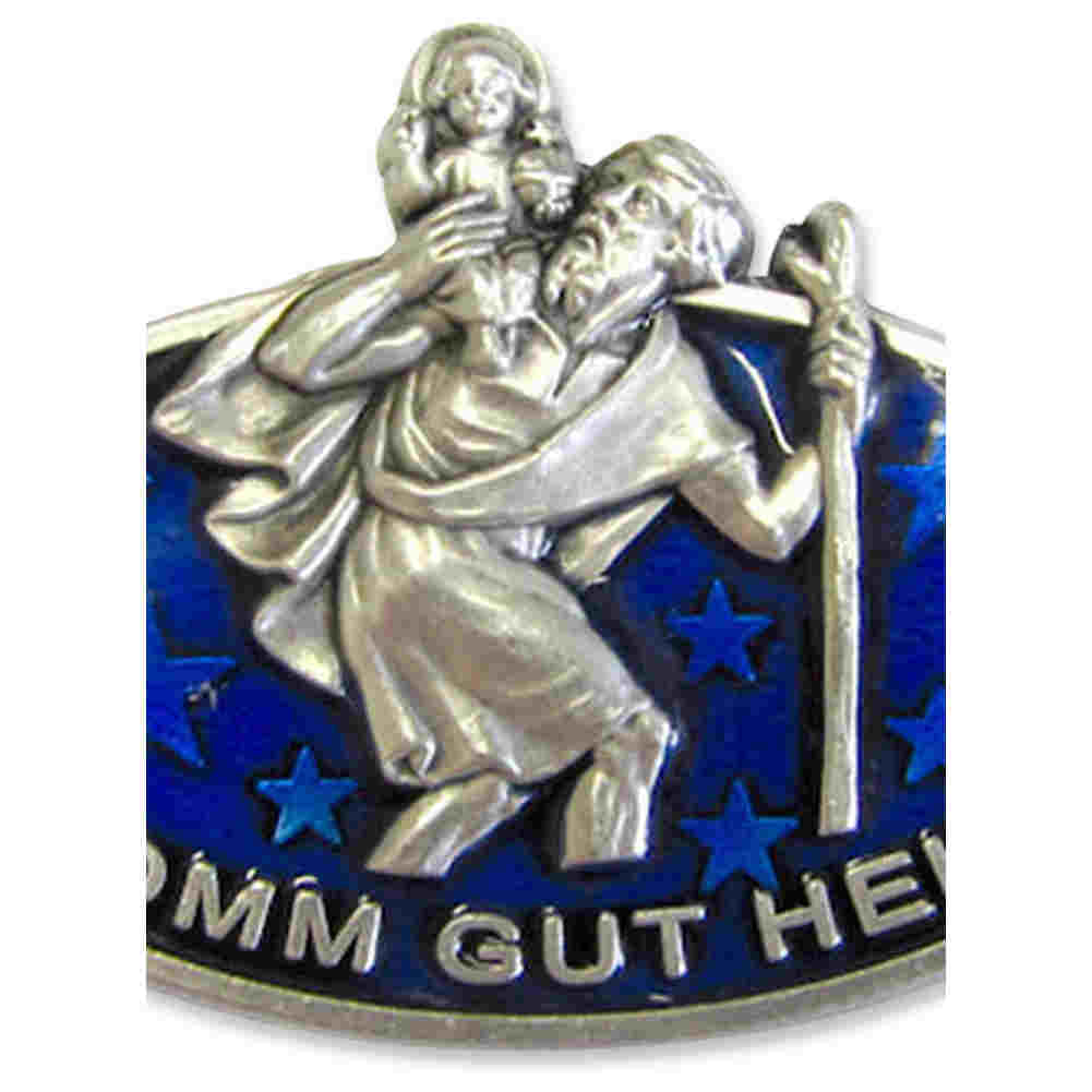 Autoplakette oval - Plakette für´s Auto in blau mit einem aufgesetztem Christophorus. Der Heilige Christophorus ist der Schutzpatron und Glücksbringer für Autofahrer und Reisende. Auch eine tolle Geschenkidee zum bestandenen Führerschein / Autoweihe.