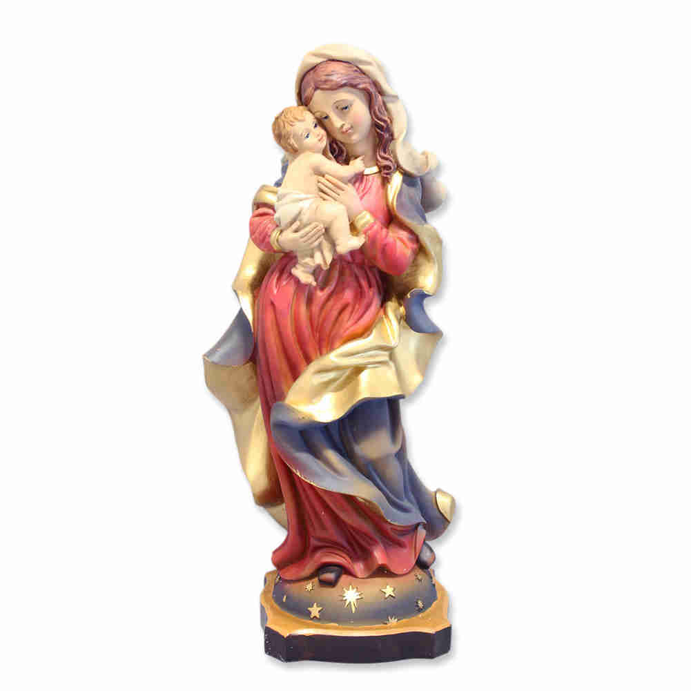 Eine wunderschöne Madonna mit Kind. Die Maria Statue ist aus hochwertigem Kunstharz / Polyresin gegossen und anschließend aufwendig mit der Hand bemalt.